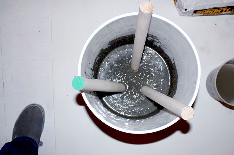 Masukkan kaki-kaki kursi kedalam campuran sekitar 3cm kedalam campuran.